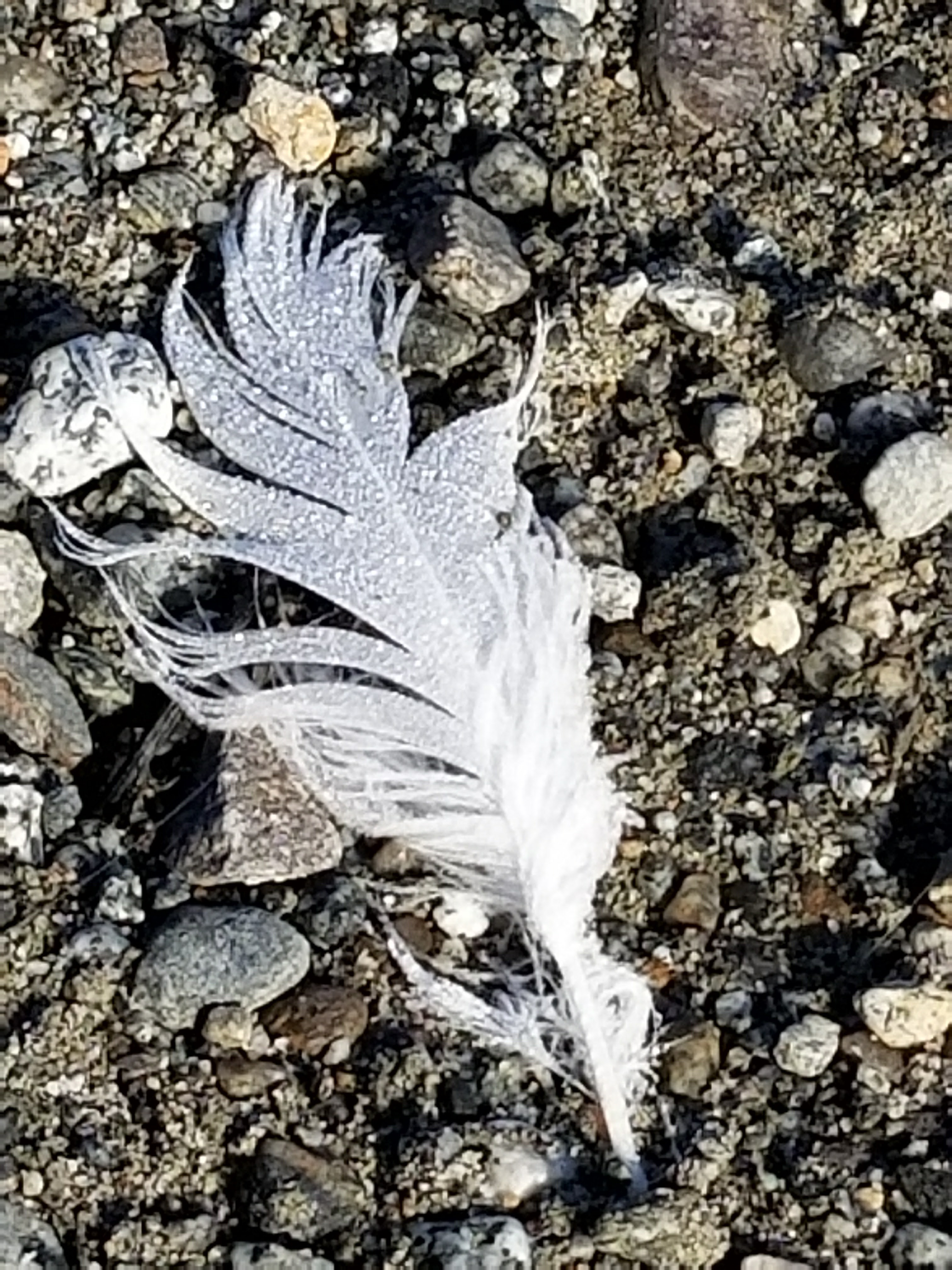 20170920_094311.jpg Published February 21, 2018 at 3024 × 4032 A lone white feather on the rocky beach